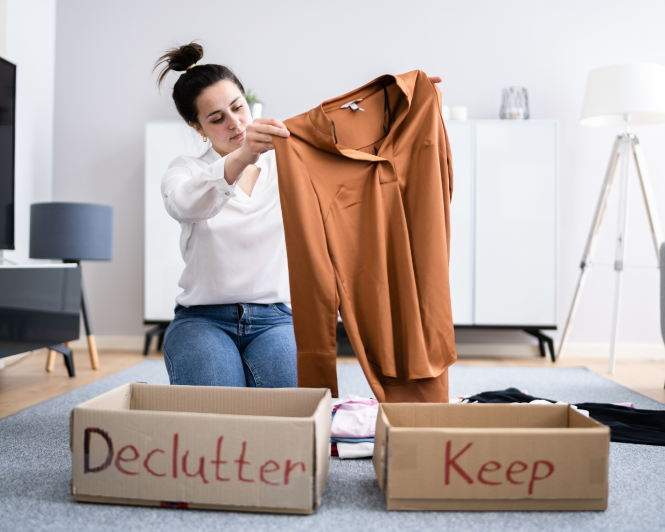 Whatever space you’re decluttering, start by clearing everything out of the space. Then declutter and only put back what you truly use, need or love.